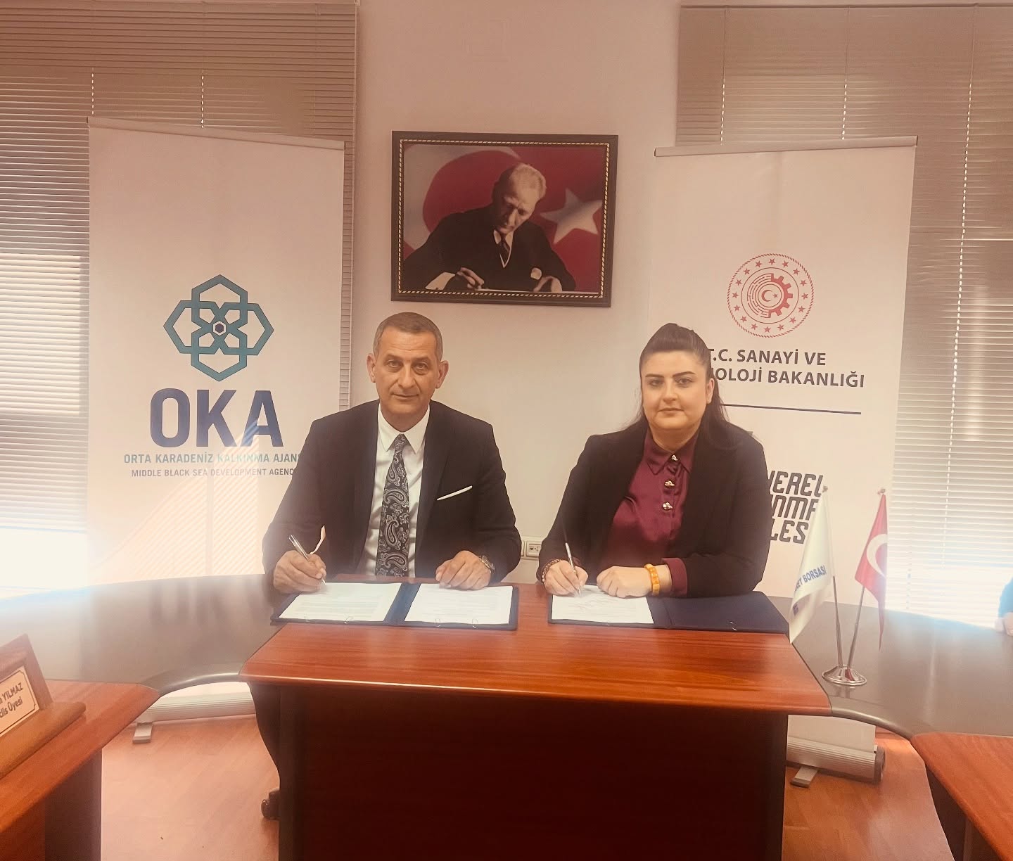 Borsa binamızda gerçekleşen imza törenine OKA Rekabetçi Ekonomi ve Dönüşüm Birim Başkanı Fatih EGE, OKA Genel Sekreteri Melike DİCLE, Yönetim kurulu Başkanımız Tarık EROL,